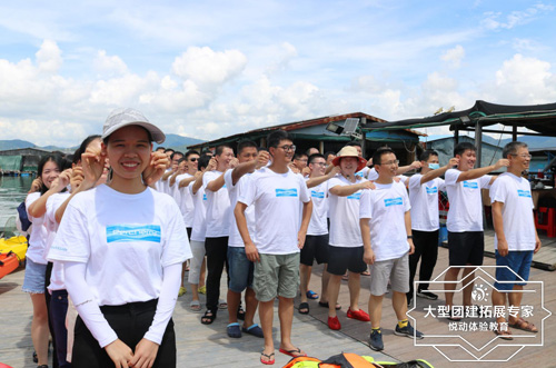 以“ 乘風破浪 歷九彌新 夢想同行 一路有你”進行海上魚排趣味一天團建活動!