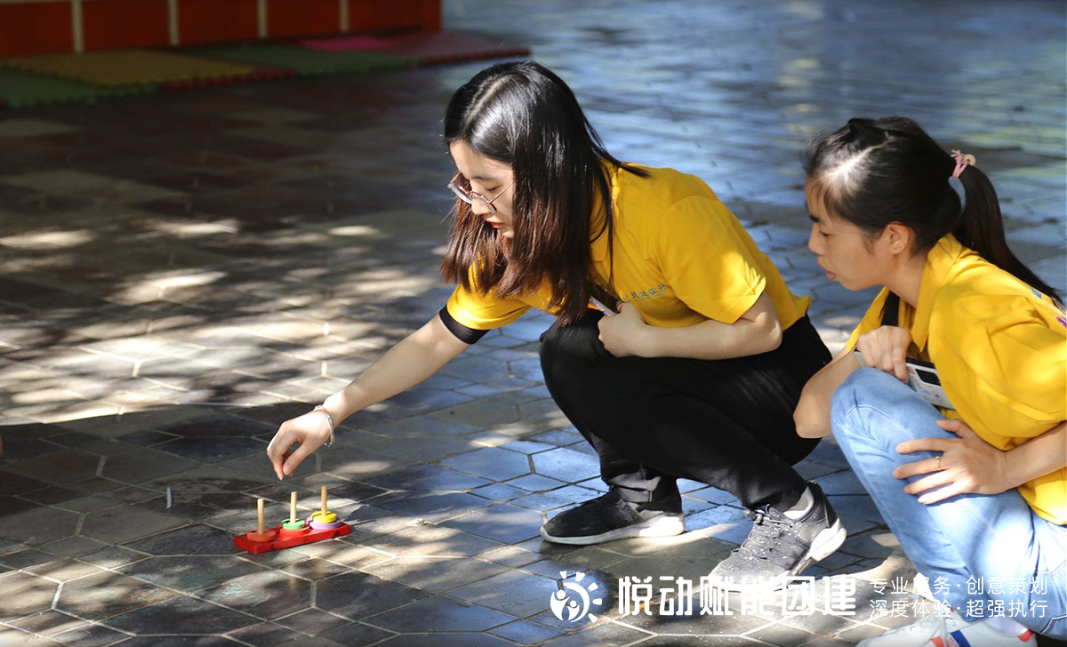 全隊人員合作將漢諾塔從初始位置A原樣移動到C(如圖),每次只允許一個人移動碟子,且每次僅允許移動一個碟子的位置;在團隊所有成員必須依次移動盤子;在任意一次移動中,較小的盤子不得被置于較大的盤子下方;正式開始以后,除移動盤子的隊員外,其他隊員必須站在培訓師規定的距離以外。