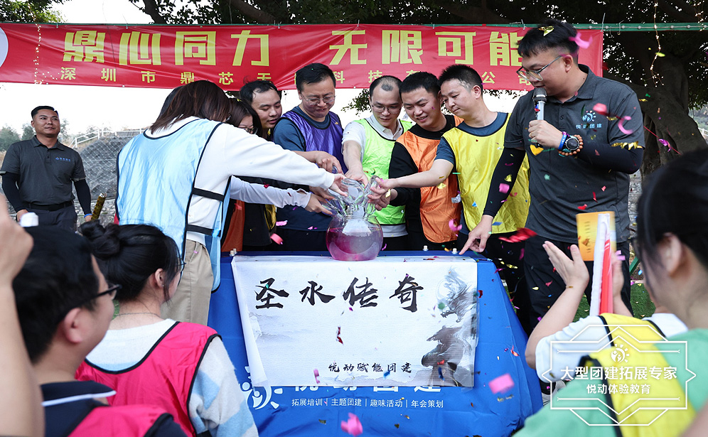 生命之水 -- 新起航 項目介紹: 各組按照順序完成挑戰,集齊團隊印章,主教練檢查通關文牒及相片,各組獲取生命之水! 大團隊集合,舞臺上放置1缸渾然之水,隊長依次倒入各自生命之水入缸,需同時將渾然之水變成一股清澈之水,缺一不可! 生命源泉,清澈見底,各組完成任務,團隊重新起航,共創輝煌,禮花綻放 |