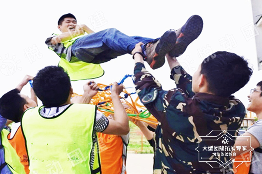 2、在抒情的背景音樂(lè)聲中,各個(gè)分隊(duì)一起用力,將被托舉者舉起來(lái),并且要托穩(wěn)。
