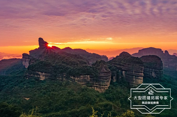 “桂林山水甲天下,不及廣東一丹霞”。丹霞山位于湘、贛、粵三省交界處的廣東省韶關(guān)市仁化縣境內(nèi),是國家級重點風(fēng)景名勝區(qū)、國家地質(zhì)地貌自然保護區(qū),被譽為中國紅石公園。方圓319平方公里的紅色山群“色如渥丹、燦若明霞”,故稱丹霞山。其山崖,遠看似染紅霞,近看則色彩斑斕,許多懸崖峭壁像刀削斧劈,直指藍天,無數(shù)奇巖美洞隱藏于山中,景色奇麗。